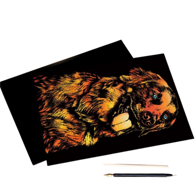 Scratch Art Goldpaint™ to nowoczesna forma sztuki, która zachwyci zarówno dzieci, jak i dorosłych. Każdy obraz pokryty jest czarną powłoką – wystarczy zdrapać ją w odpowiednich miejscach, aby ukazał się efektowny, złoty wzór. Dzięki prostemu mechanizmowi zdrapywania, tworzenie obrazu jest przyjemne, odprężające i daje natychmiastowy efekt satysfakcji. Gotowe prace wyglądają jak eleganckie ilustracje, które można powiesić w domu lub podarować bliskim.