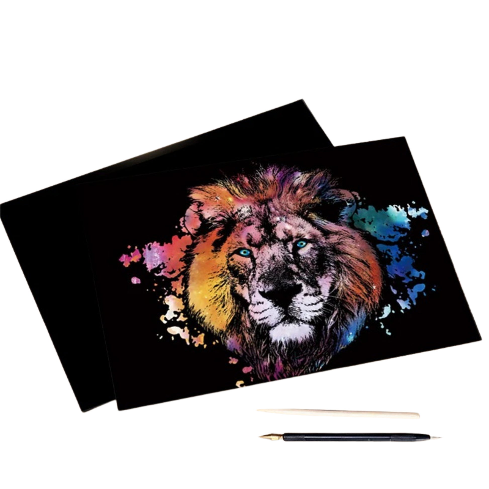 To kreatywny zestaw, w którym zdrapywanie czarnej powłoki odsłania złote wzory przedstawiające zwierzęta – sierść, pióra i sylwetki w najdrobniejszych szczegółach. Każdy ruch rysikiem pozwala odkrywać kolejne elementy obrazu, a złote detale błyszczą w świetle, tworząc wrażenie eleganckiego i luksusowego dzieła sztuki. Proces tworzenia jest nie tylko wciągający, ale również relaksujący – pozwala oderwać się od codziennych obowiązków, wyciszyć myśli i skupić się na kreatywnym działaniu. Tworzenie obrazów Goldpaint™ rozwija wyobraźnię i zdolności manualne, a jednocześnie daje ogromną satysfakcję z obserwowania, jak powstaje unikalne dzieło. Gotowy obraz można powiesić w domu, podarować bliskim lub stworzyć własną kolekcję złotych ilustracji, które zachwycają precyzją detali i wyjątkowym efektem