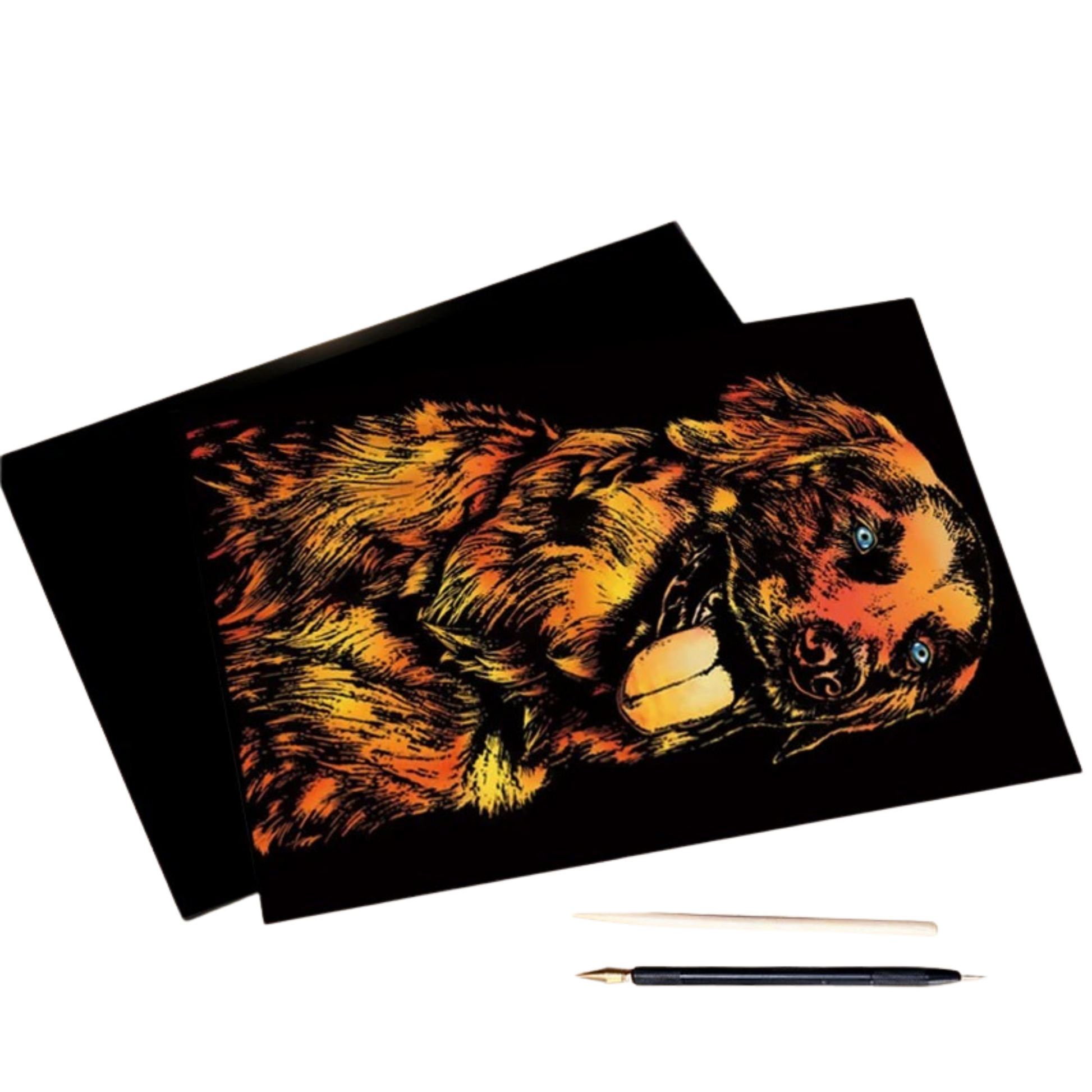 To kreatywny zestaw, w którym zdrapywanie czarnej powłoki odsłania złote wzory przedstawiające zwierzęta – sierść, pióra i sylwetki w najdrobniejszych szczegółach. Każdy ruch rysikiem pozwala odkrywać kolejne elementy obrazu, a złote detale błyszczą w świetle, tworząc wrażenie eleganckiego i luksusowego dzieła sztuki. Proces tworzenia jest nie tylko wciągający, ale również relaksujący – pozwala oderwać się od codziennych obowiązków, wyciszyć myśli i skupić się na kreatywnym działaniu. Tworzenie obrazów Goldpaint™ rozwija wyobraźnię i zdolności manualne, a jednocześnie daje ogromną satysfakcję z obserwowania, jak powstaje unikalne dzieło. Gotowy obraz można powiesić w domu, podarować bliskim lub stworzyć własną kolekcję złotych ilustracji, które zachwycają precyzją detali i wyjątkowym efektem